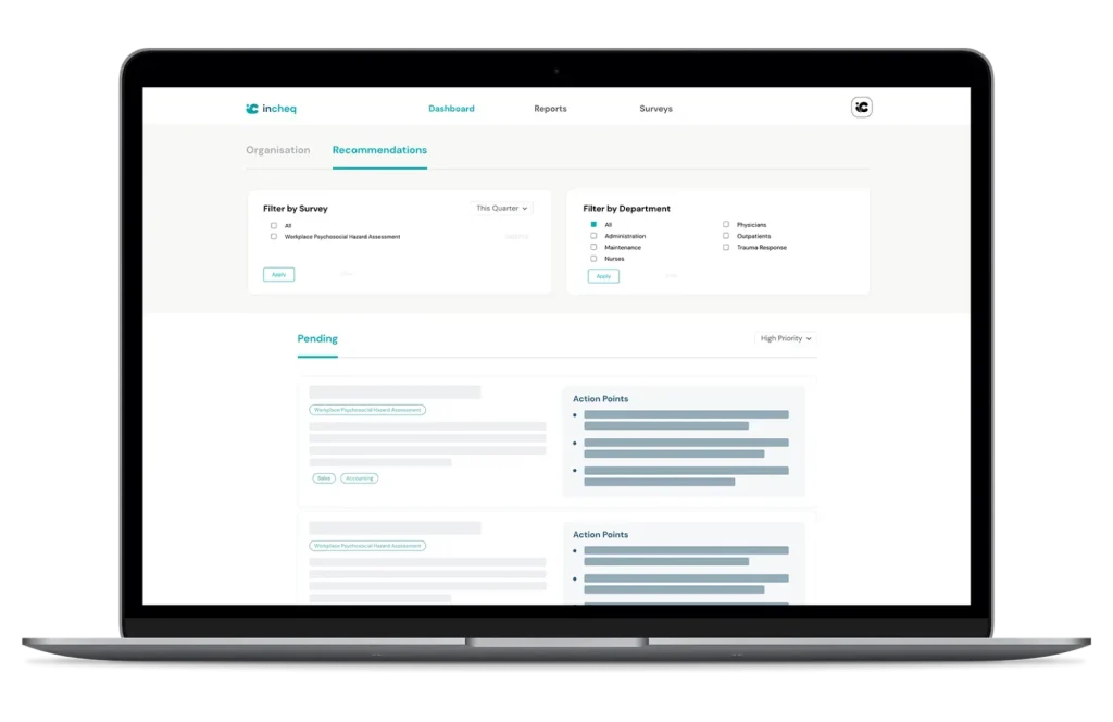 Upon survey completion, key stakeholders will receive access to evidence-based, department-specific recommendations and action points to control psychosocial risks and hazards.